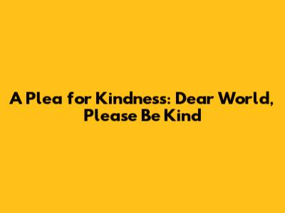 A Plea For Kindness: Dear World, Please Be Kind