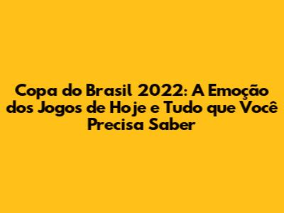 Fala, galera! Se você é apaixonado por futebol e adora acompanhar a emoção da Copa do Brasil, você chegou ao lugar certo. Neste artigo, vamos mergulhar nos jogos de hoje da Copa do Brasil 2022, trazendo tudo o que você precisa saber para não perder nenhum lance. Prepare-se para conhecer os resultados, as análises, os destaques e muito mais. Vamos juntos nessa jornada esportiva!